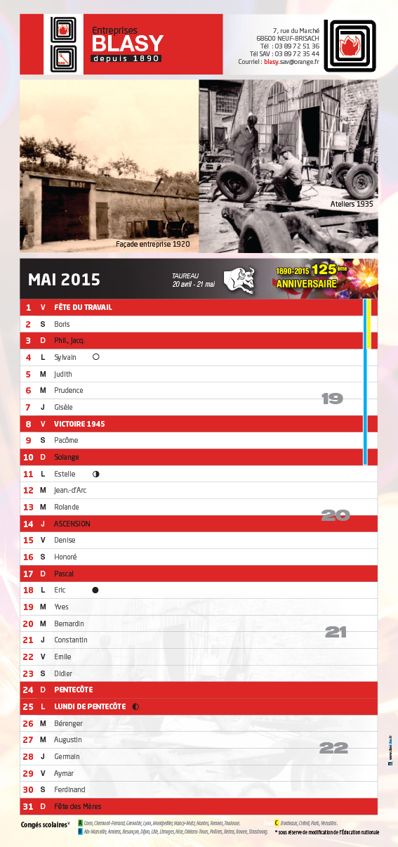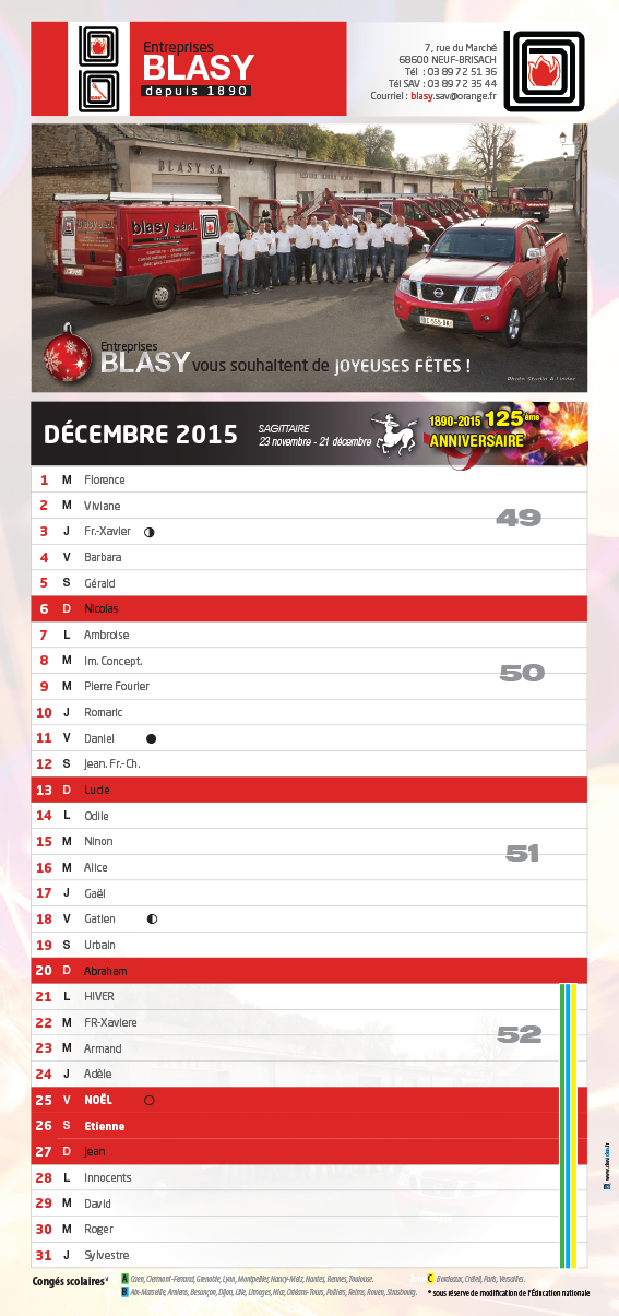 Calendrier 12 pages 42 cm x 20 cm incluant 12 photos.